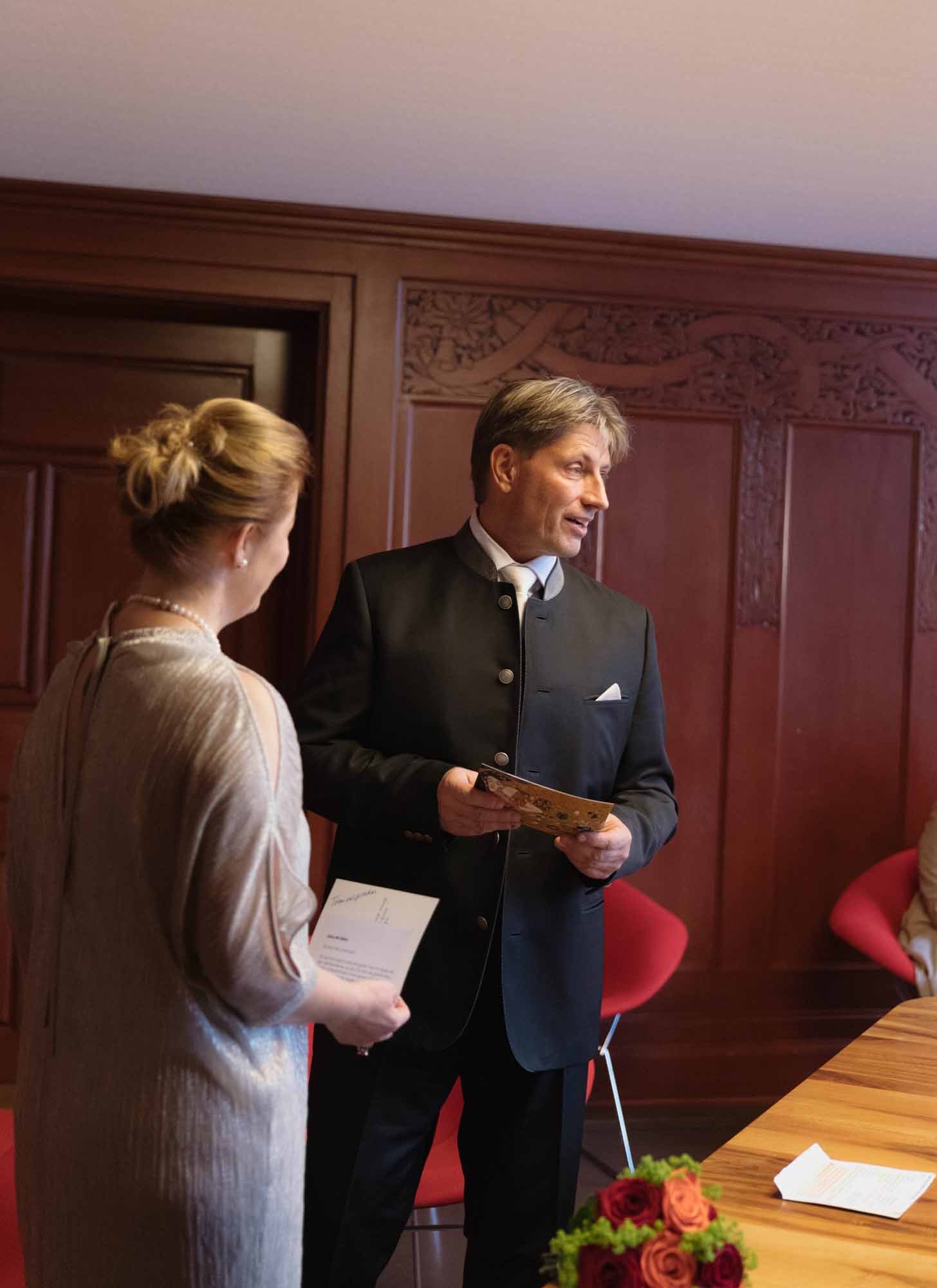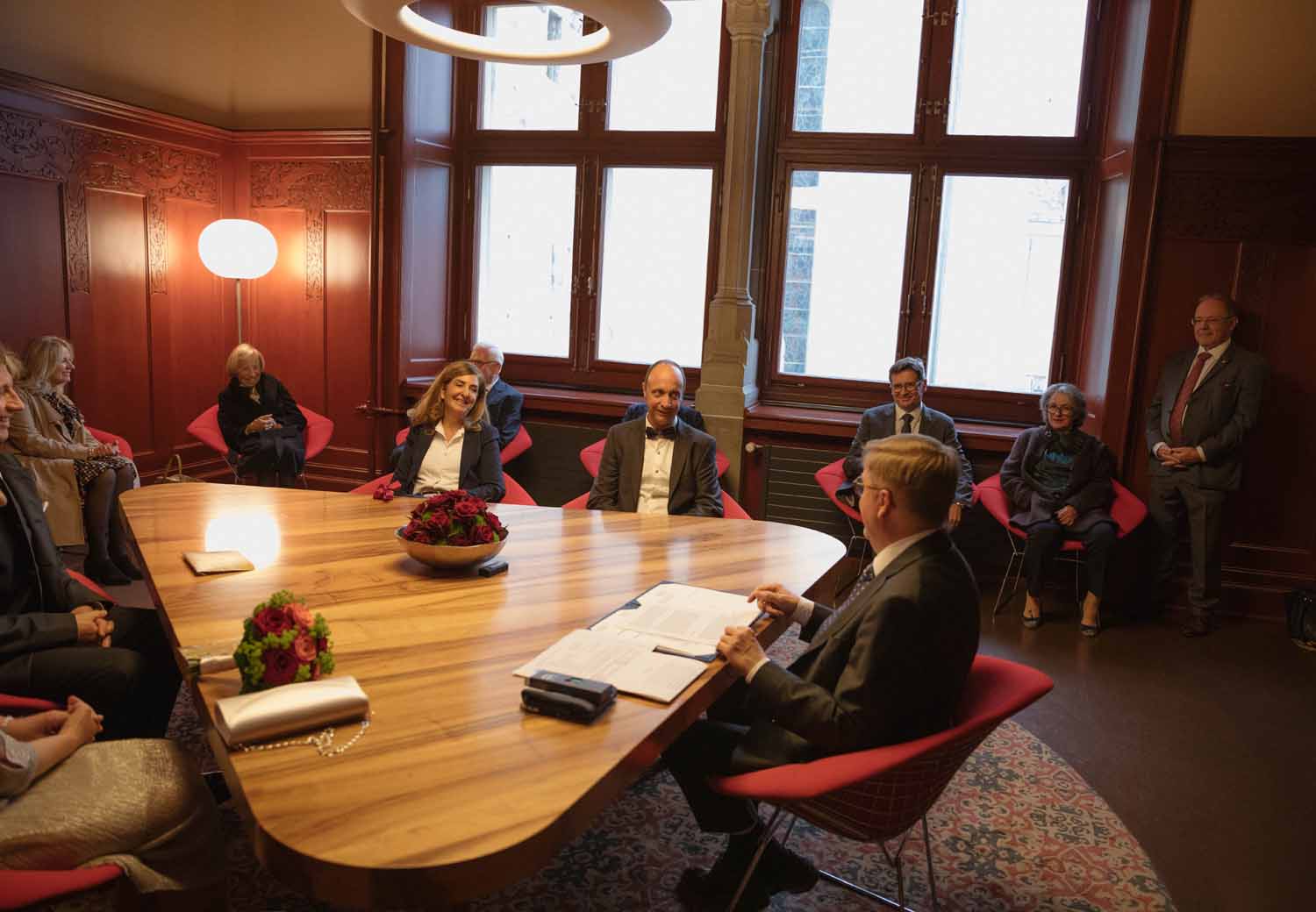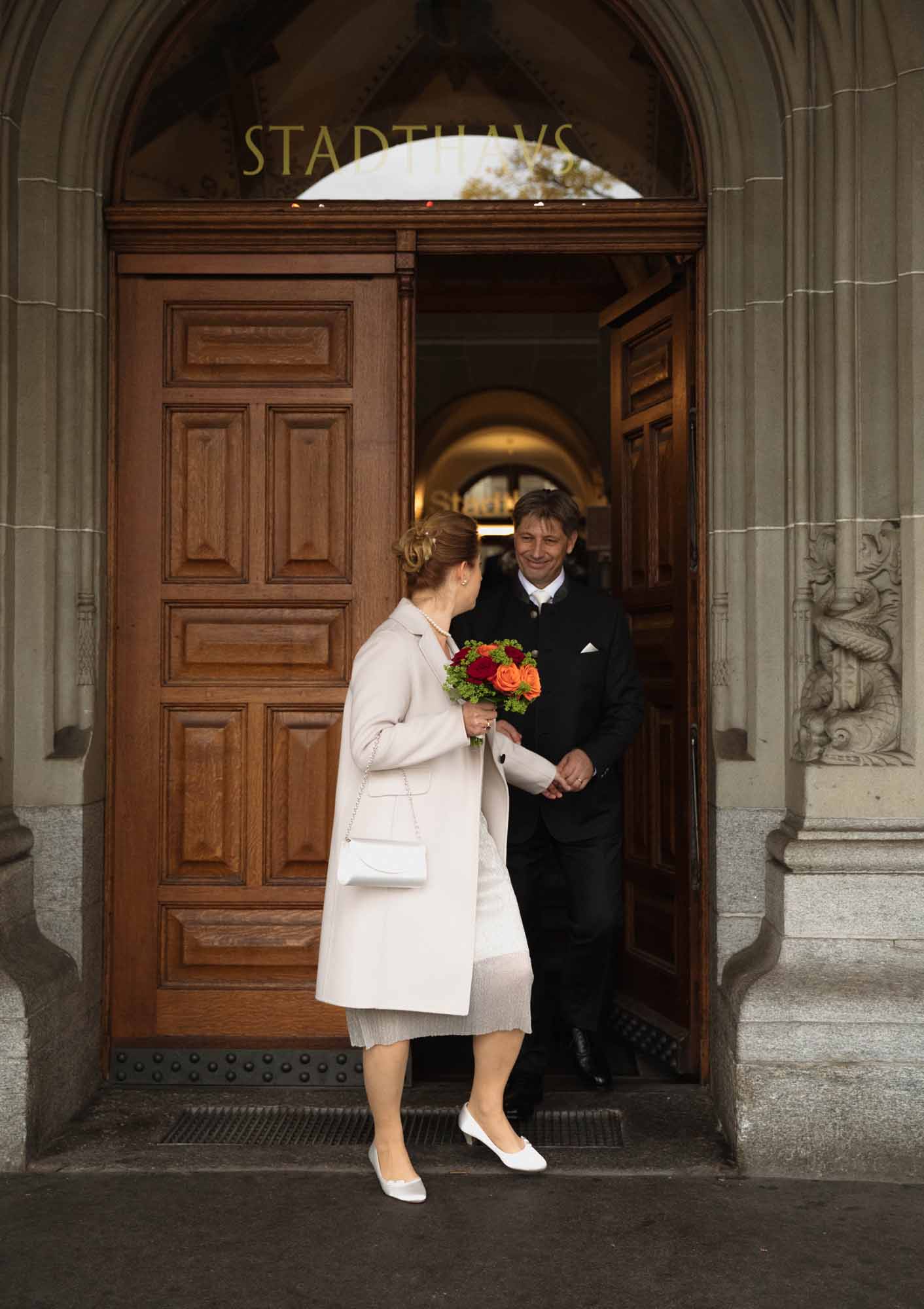 An einem etwas regnerischen Herbsttag, besiegelten Annette und Stefan im engsten Rahmen der Familie und Freunde, offiziell ihre Liebe im historischen Stadthaus Zürich. Nach der feierlichen Zeremonie ging es zum festlichen Apéro ins Zunfthaus zum Rüden, welches im eleganten Ambiente die besondere Bedeutung des Tages unterstrich.