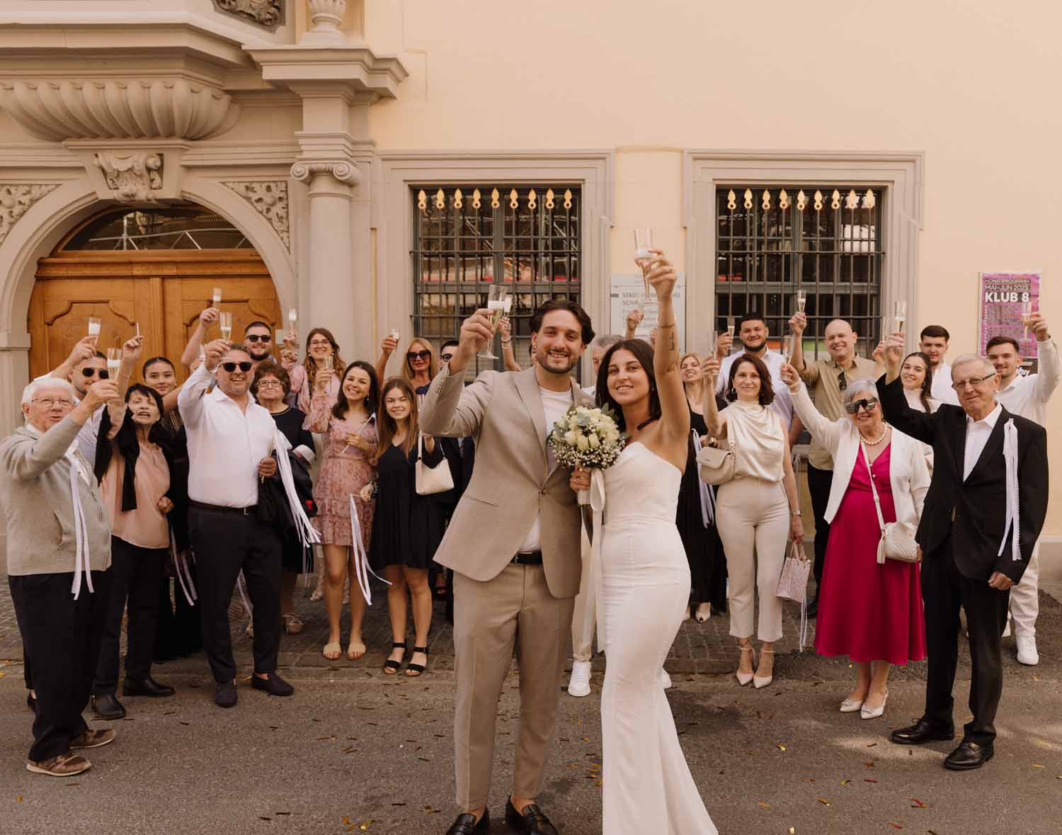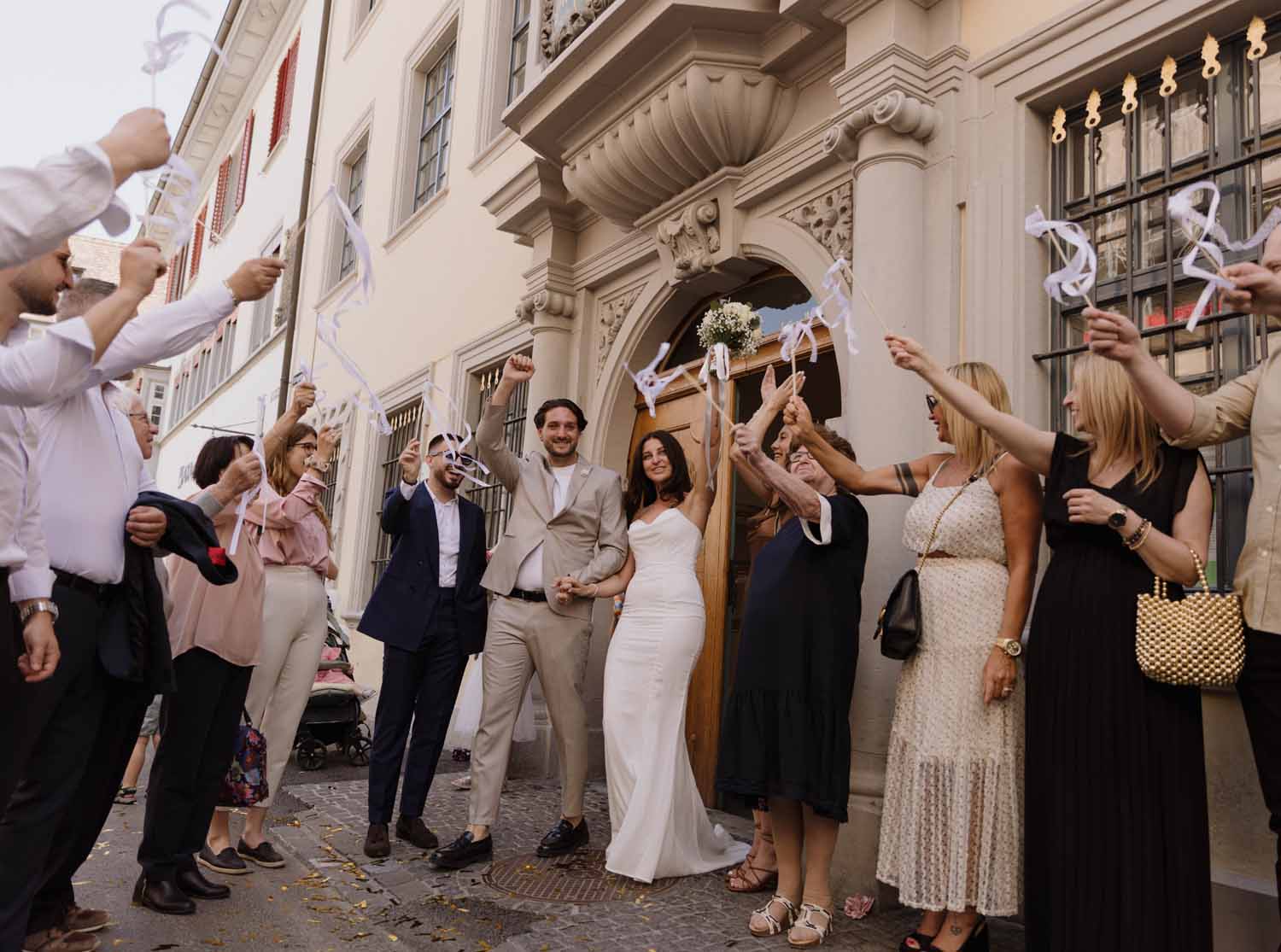 Mattea und Emanuele trauten sich am 6. Juni, begleitet von ihren Liebsten und tollem, sommerlichem Wetter. Der besondere Tag begann im historischen Hotel Park Villa, einem kleinen Schloss am Rande der Schaffhauser Altstadt mit romantischer Inneneinrichtung und fand seine Fortsetzung mit einer emotionalen standesamtlichen Zeremonie und einem feierlichen Essen.
